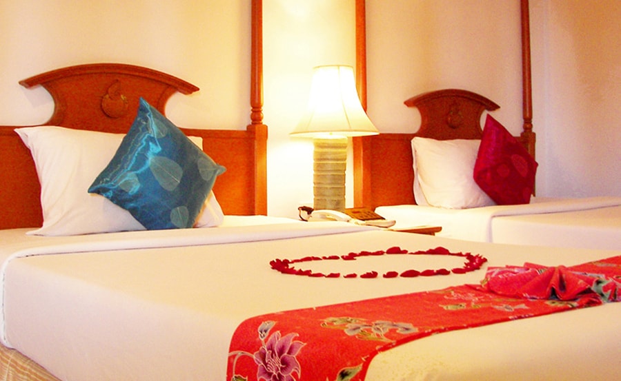 Deluxe Building 36 sq. m. | Twin or Double 70 Guest-Rooms are comfortably furnished and located in either the hotel or in traditional style Bungalows scattered through the resort's garden. Each room has individually controlled .