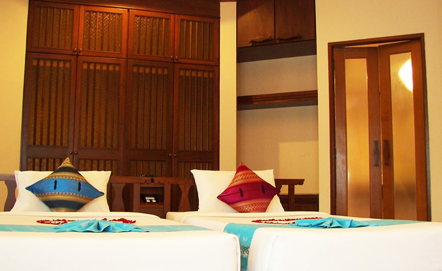 Pavilion Sea View 50 sq. m. | Twin or Double 70 Guest-Rooms are comfortably furnished and located in either the hotel or in traditional style Bungalows scattered through the resort's garden. Each room has individually controlled